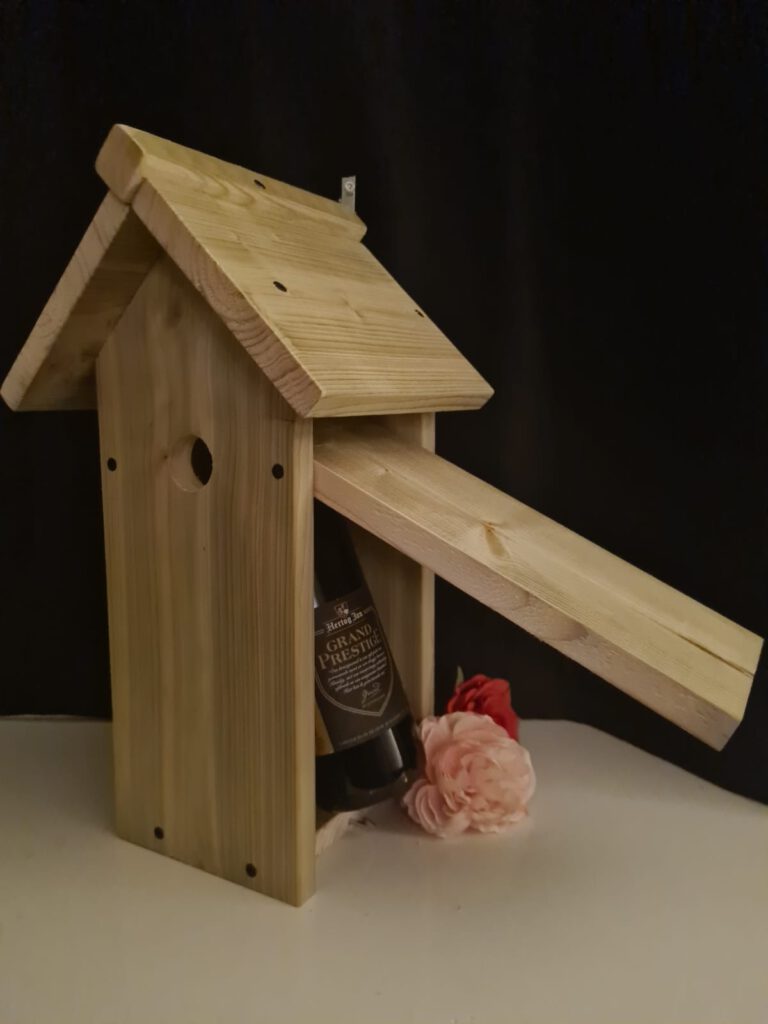 Unieke manier om een bijzonder cadeau te geven. Ecologisch vogelhuis met een bijzondere fles Hertog Jan Grand Prestige!